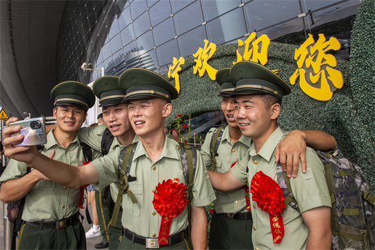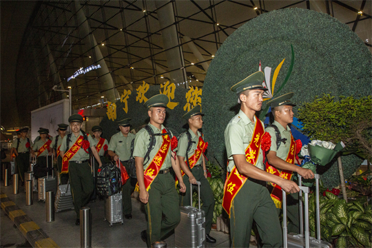 圖為退役士兵有序返鄉(xiāng)。盧泳鋼 攝
