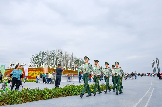 圖為武警安徽總隊(duì)合肥支隊(duì)執(zhí)勤官兵在第十四屆中國(合肥)國際園林博覽會現(xiàn)場武裝巡邏執(zhí)勤。