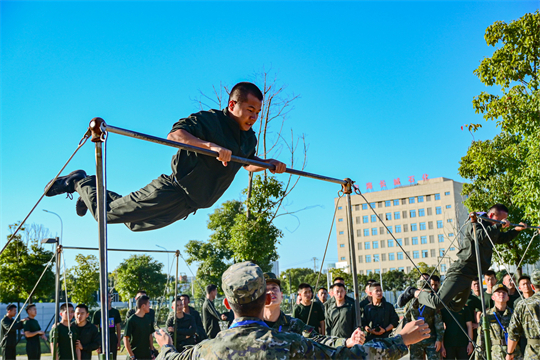 投擲場上,參賽隊員將體能與技能完美結合,演繹著不一樣的“速度與激情”。30X2蛇形跑賽場上,他們重心壓低,一路漂移。五公里武裝越野、運送彈藥箱、防暴彈投擲……這些火藥味兒十足的項目營造出精武強能的氛圍,讓參賽隊員在賽場上淬煉勇于爭先的品行意志,錘煉過硬戰(zhàn)斗本領。他們把體育精神融入戰(zhàn)斗精神,在賽場上揮灑汗水,在比拼中錘煉血性,讓青春活力和激情熱血在賽場上同頻共振。