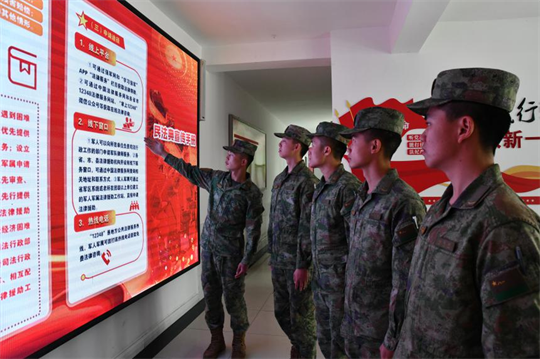 圖為基層官兵收看“國(guó)家憲法日”直播。