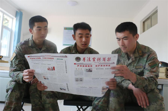 圖為基層官兵閱讀普法宣傳簡(jiǎn)報(bào)。