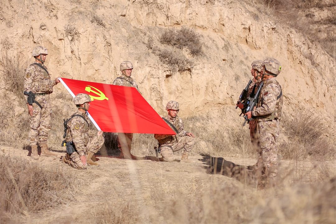 圖為官兵們圓滿處置任務(wù)后,開展“火線入黨”儀式。