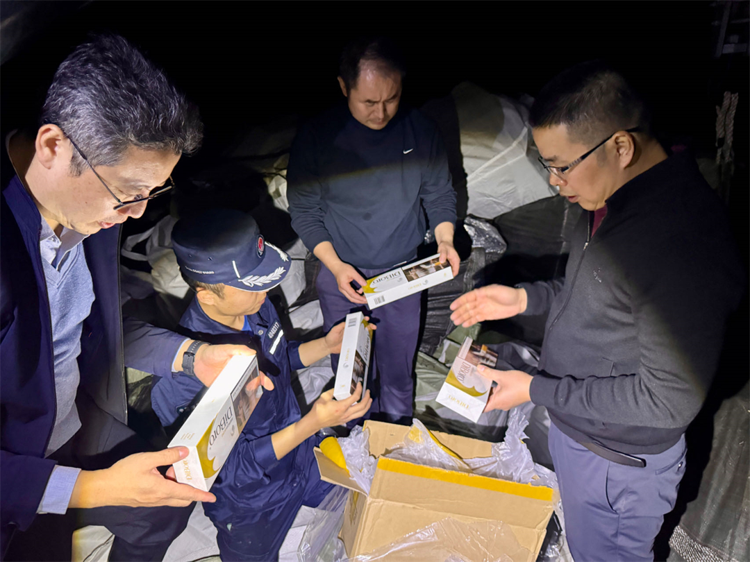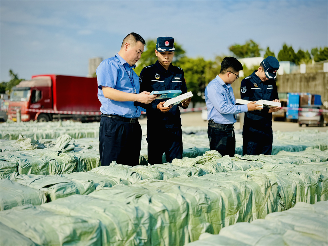 圖為海警執(zhí)法員清點(diǎn)涉案貨物。