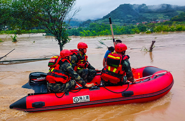 圖為武警陽朔中隊官兵參加抗洪搶險行動。