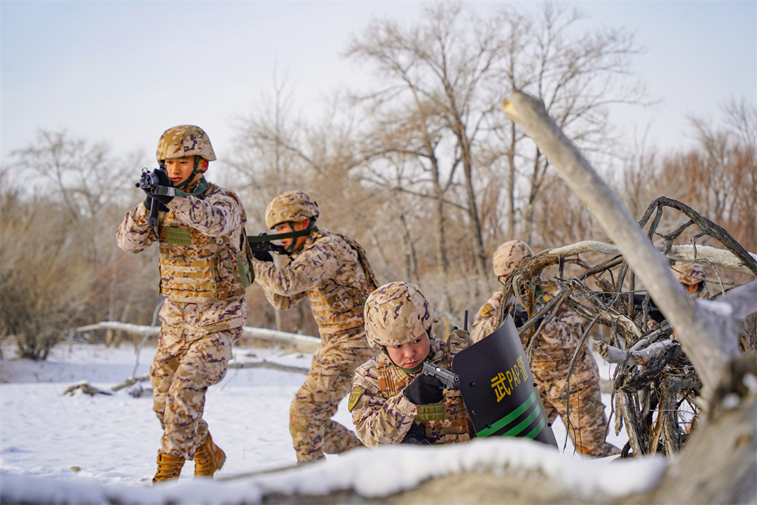 開訓(xùn)首日,武警部隊(duì)數(shù)十萬(wàn)將士云集沙場(chǎng),武警部隊(duì)黨委號(hào)召全體官兵立起練兵備戰(zhàn)鮮明導(dǎo)向,堅(jiān)持以戰(zhàn)領(lǐng)訓(xùn)、大抓基礎(chǔ)訓(xùn)練,創(chuàng)新合成訓(xùn)練、深化科技練兵。武警內(nèi)蒙古總隊(duì)某支隊(duì)依托駐地氣候和地形條件,模擬真實(shí)戰(zhàn)場(chǎng)環(huán)境,組織官兵開展實(shí)戰(zhàn)化課目訓(xùn)練,全面錘煉部隊(duì)在實(shí)戰(zhàn)下的綜合作戰(zhàn)能力。