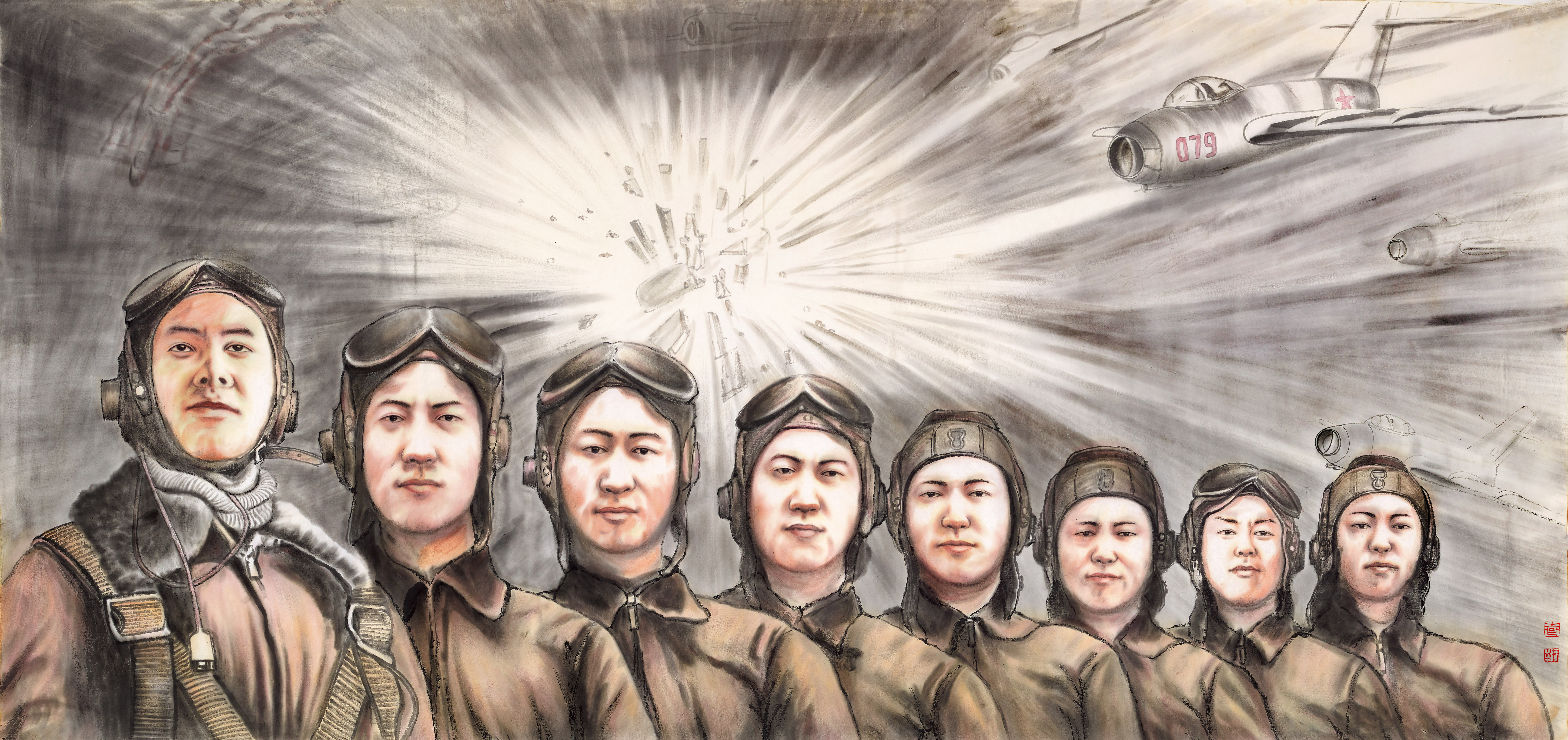保家衛(wèi)國(guó)首征戰(zhàn),朝鮮上空滅豺狼。