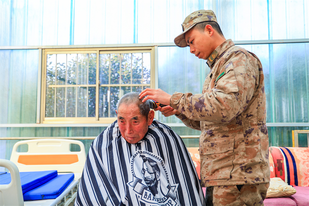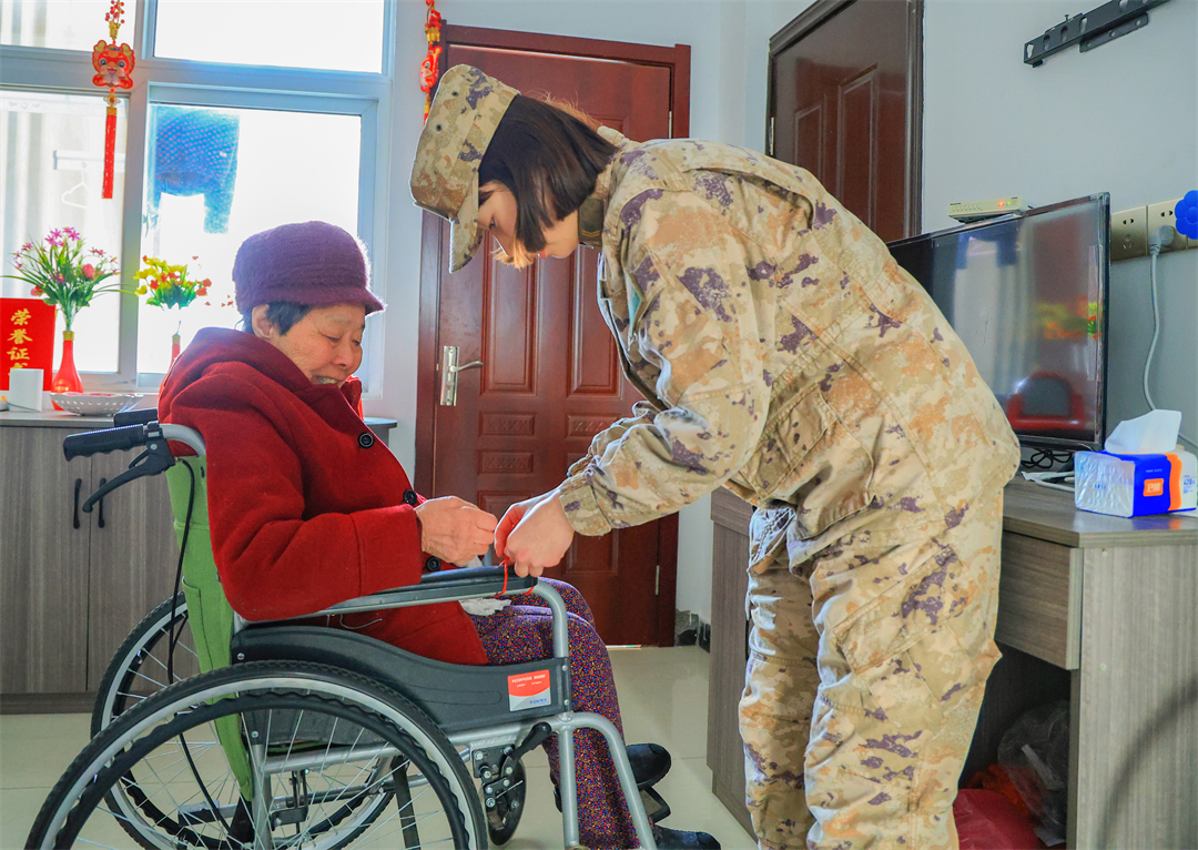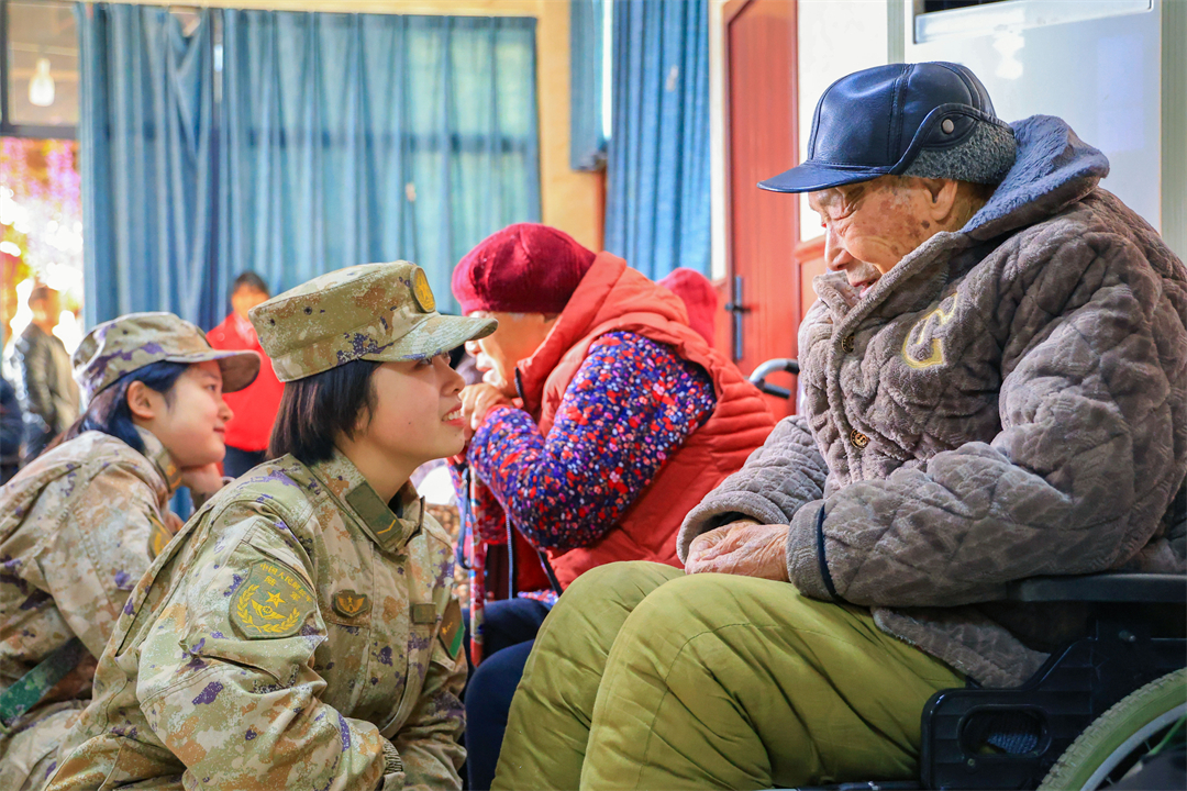 圖為第71集團(tuán)軍“攻堅勁旅”組織官兵走進(jìn)駐地敬老院開展“送溫暖、送節(jié)目、送醫(yī)療”等“三送活動”。