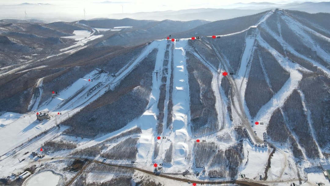 圖為“十四冬”賽場(chǎng)氣象設(shè)備分布圖。