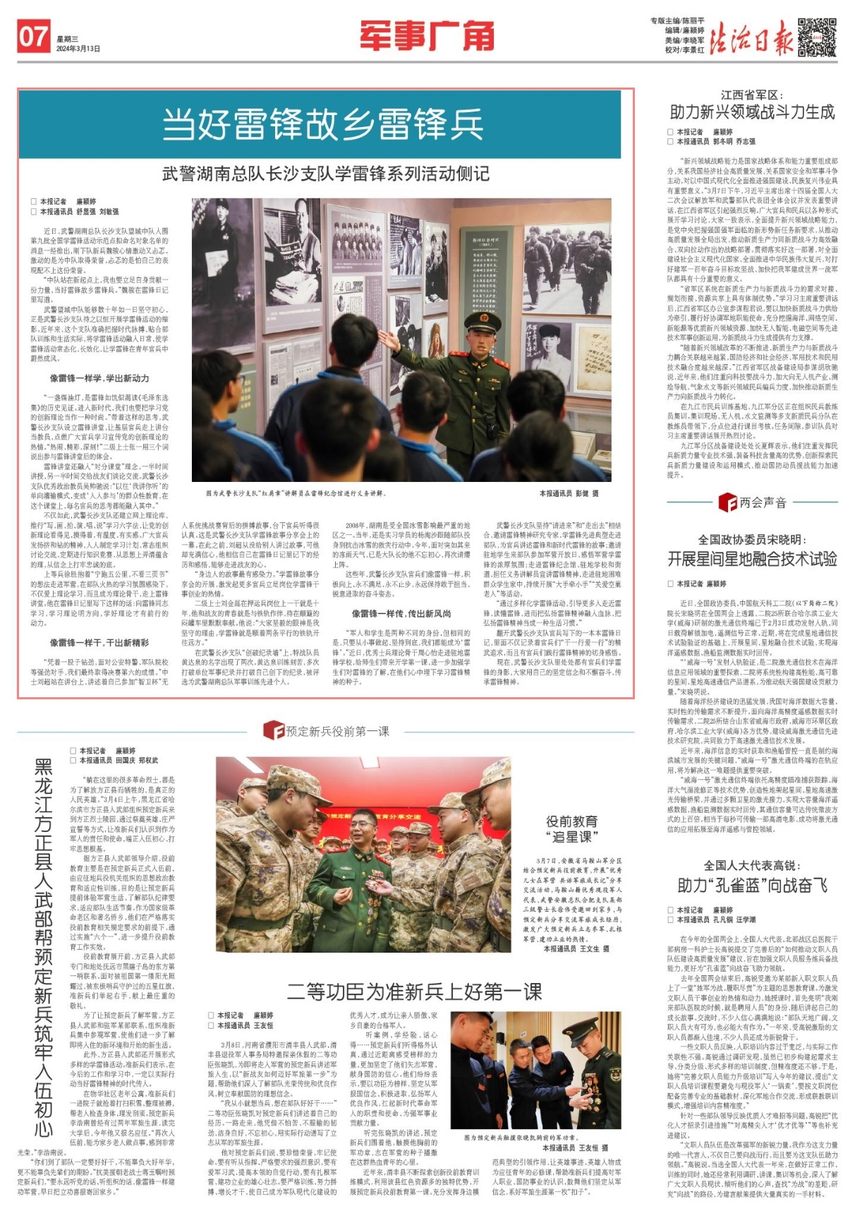 現(xiàn)在,武警長(zhǎng)沙支隊(duì)里處處都有官兵們學(xué)雷鋒的身影,大家用自己的堅(jiān)定信念和不懈奮斗,傳承雷鋒精神。