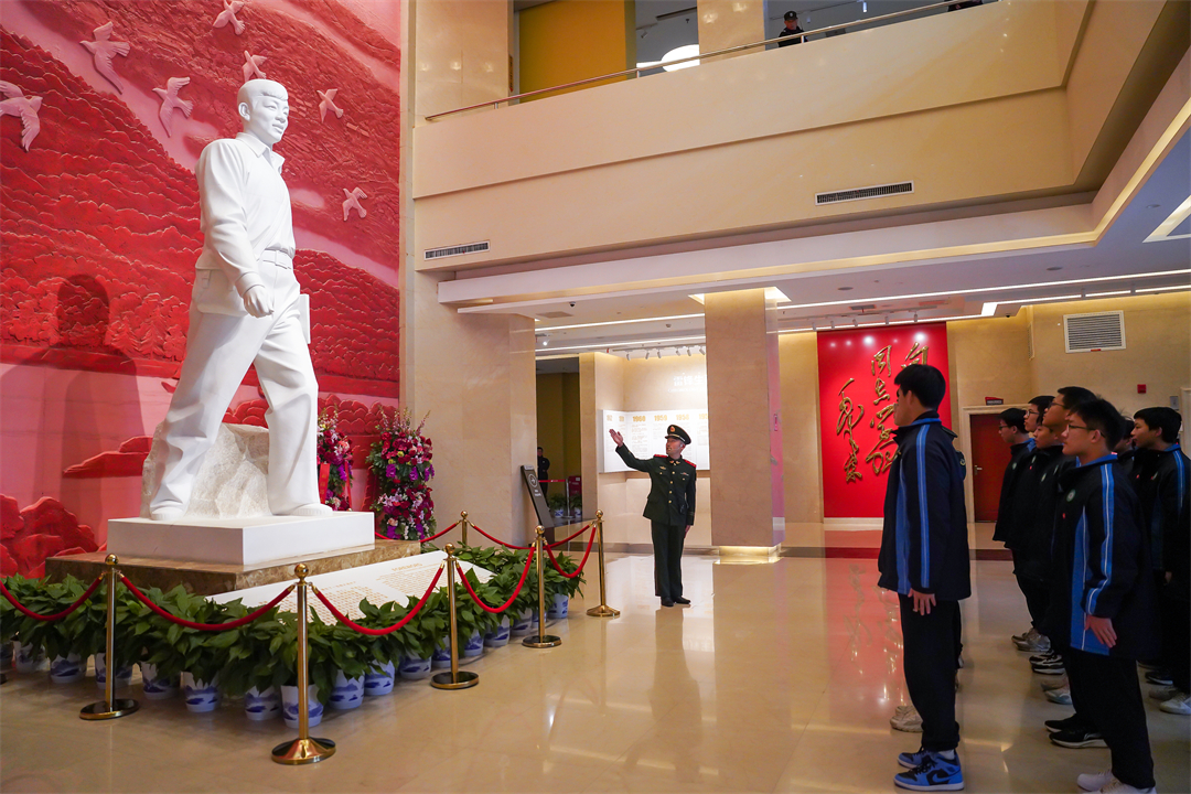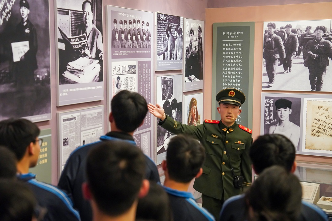 圖為武警長(zhǎng)沙支隊(duì)“紅肩章”講解員在雷鋒紀(jì)念館進(jìn)行義務(wù)講解。