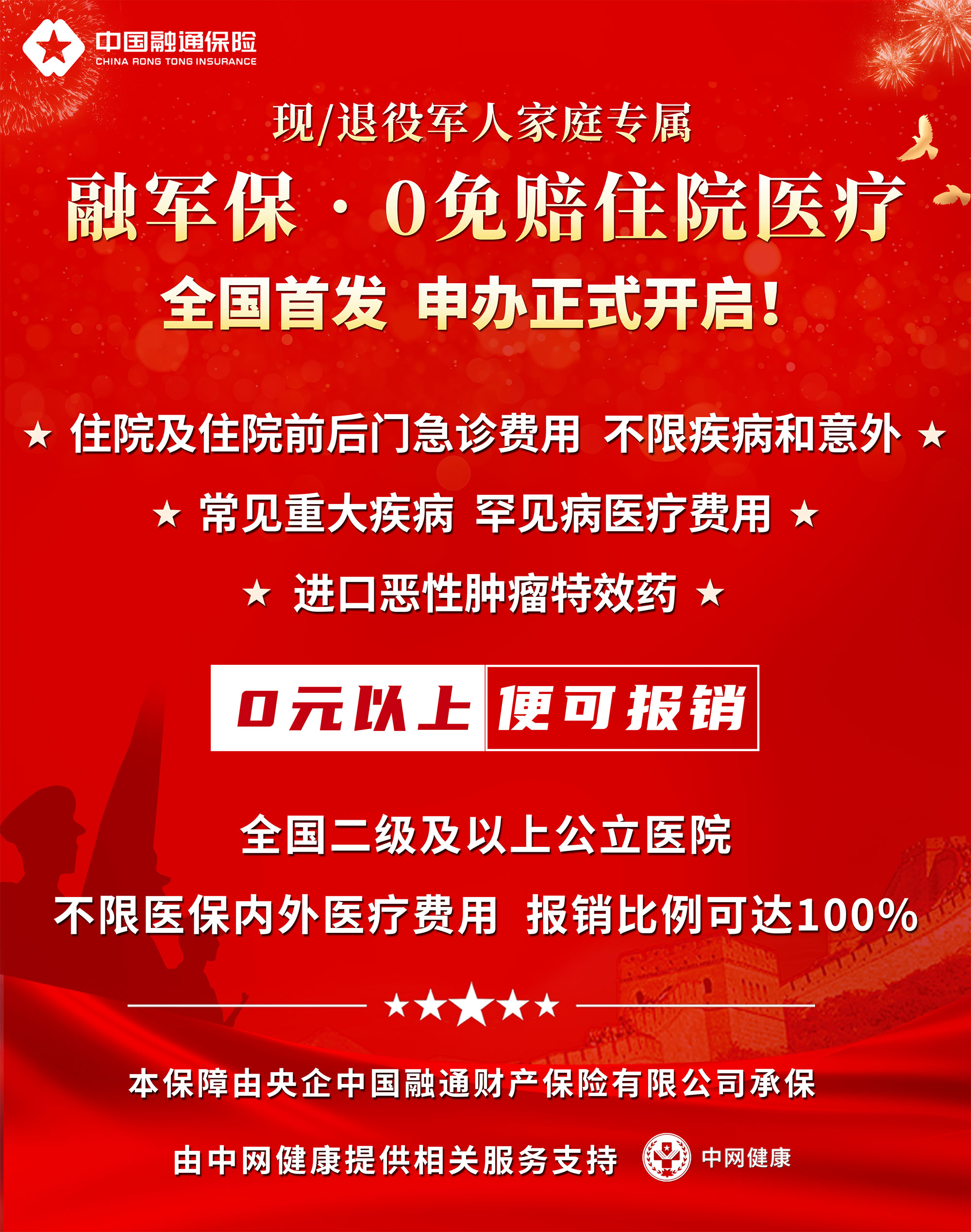 為深入貫徹落實(shí)黨的二十大關(guān)于退役軍人工作重要部署,履行“為軍惠軍”職責(zé)使命,體現(xiàn)中央企業(yè)服務(wù)經(jīng)濟(jì)社會(huì)高質(zhì)量發(fā)展的“國(guó)家隊(duì)、排頭兵”作用,進(jìn)一步提升退役軍人保險(xiǎn)保障水平。中國(guó)融通保險(xiǎn)發(fā)揮自身為軍服務(wù)“專(zhuān)門(mén)化、專(zhuān)業(yè)化”服務(wù)優(yōu)勢(shì),聚焦現(xiàn)/退役軍人家庭醫(yī)療現(xiàn)實(shí)需求,于2024年3月14日,聯(lián)合中網(wǎng)健康正式上線(xiàn)了《融軍保·0免賠住院醫(yī)療》保險(xiǎn)產(chǎn)品。此產(chǎn)品由中國(guó)融通保險(xiǎn)全面負(fù)責(zé)定制研發(fā),由中網(wǎng)健康提供相關(guān)配套服務(wù)支持。該保險(xiǎn)因其“0免賠”的保障優(yōu)勢(shì),真正實(shí)現(xiàn)了“看病住院,小錢(qián)、大錢(qián)均可報(bào)銷(xiāo)”。