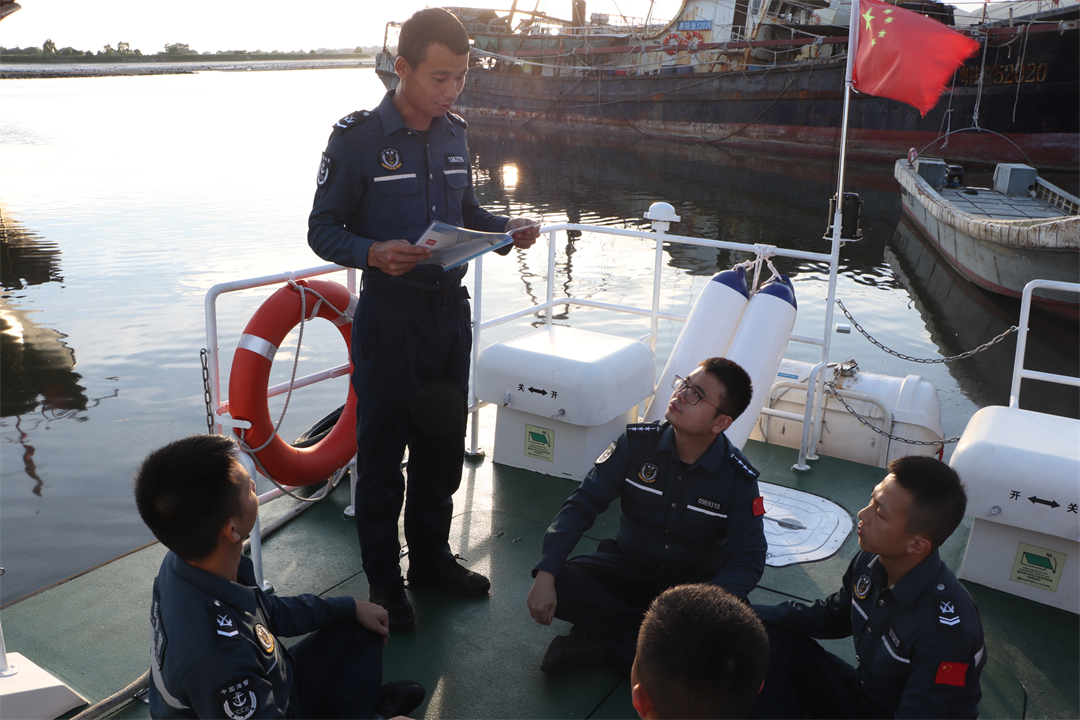 圖為海警執(zhí)法員開(kāi)展大討論。