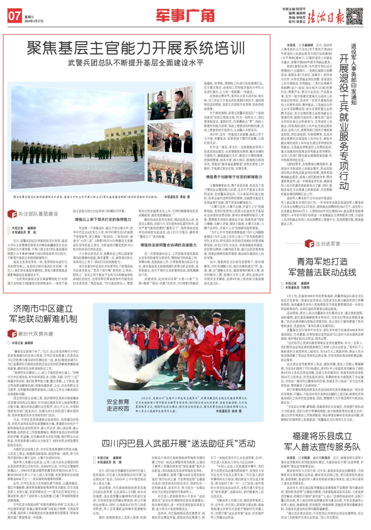 “小事不出村、大事不出鎮(zhèn)、矛盾不上交”的楓橋經(jīng)驗(yàn),是我們黨帶領(lǐng)人民群眾創(chuàng)造的關(guān)于基層社會(huì)治理的寶貴經(jīng)驗(yàn)。某中隊(duì)將楓橋經(jīng)驗(yàn)引入軍營(yíng),貫徹落實(shí)到部隊(duì)建設(shè)各方面,探索形成“消除小摩擦、化解小矛盾、排除小隱患,小事不出班、大事不出中隊(duì)、矛盾不上交”的楓橋經(jīng)驗(yàn)軍營(yíng)版。