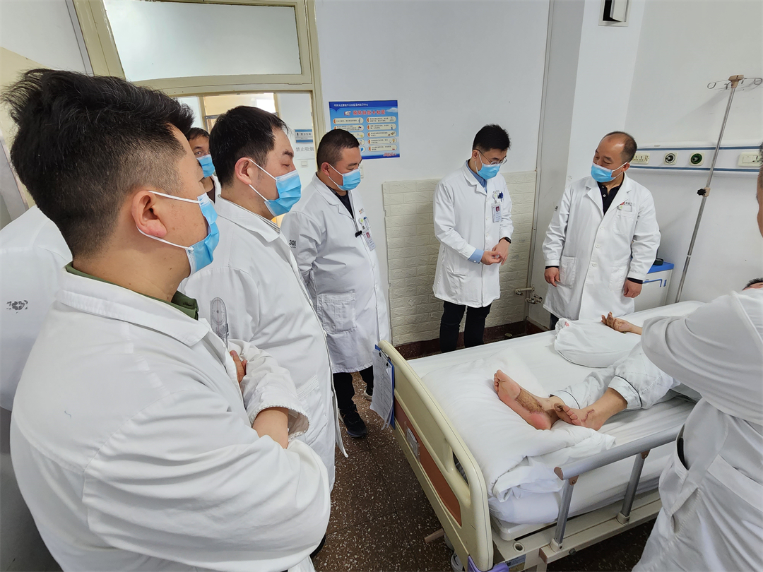“您不用壓力太大,已經(jīng)是術后第5天了,沒有發(fā)生血管痙攣或者血栓,基本穩(wěn)定的血液循環(huán)說明在我們醫(yī)護團隊精心治療和護理下,再植的手指已經(jīng)成活。用不了多久,您就能夠繼續(xù)干農(nóng)活啦!”張建政耐心向傷者解釋傷情恢復情況。