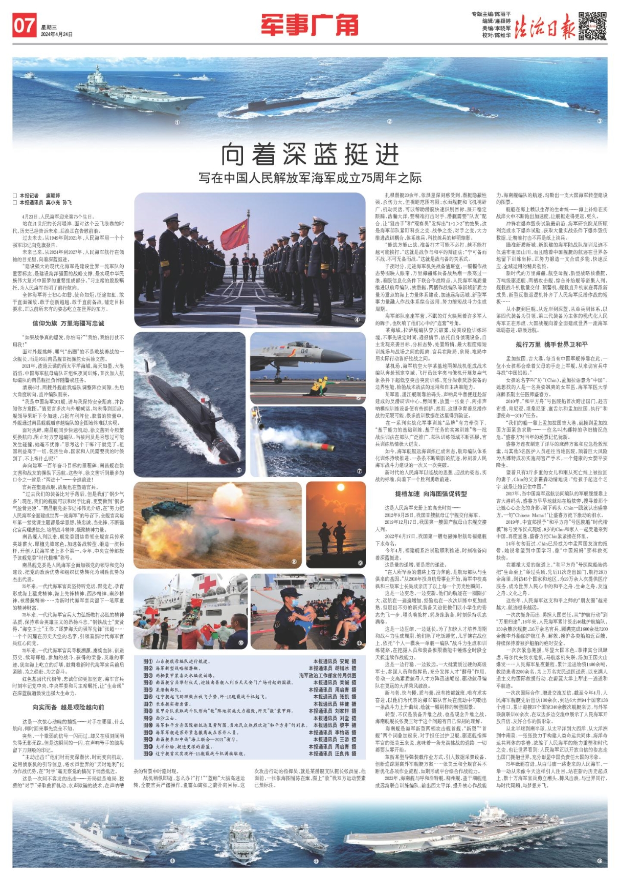 75年砥礪奮進(jìn),從白馬廟一路走來的人民海軍,一舉一動從未像今天這樣引人注目。站在新的歷史起點上,數(shù)十萬海軍官兵勇立潮頭、搏風(fēng)擊浪,與世界同行、與時代同頻、與夢想齊飛。