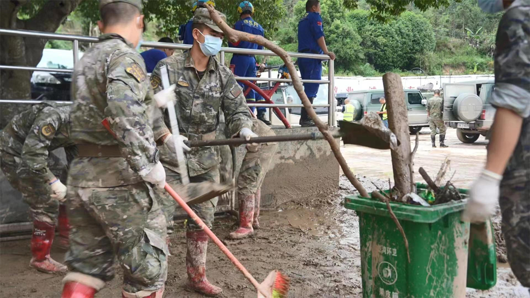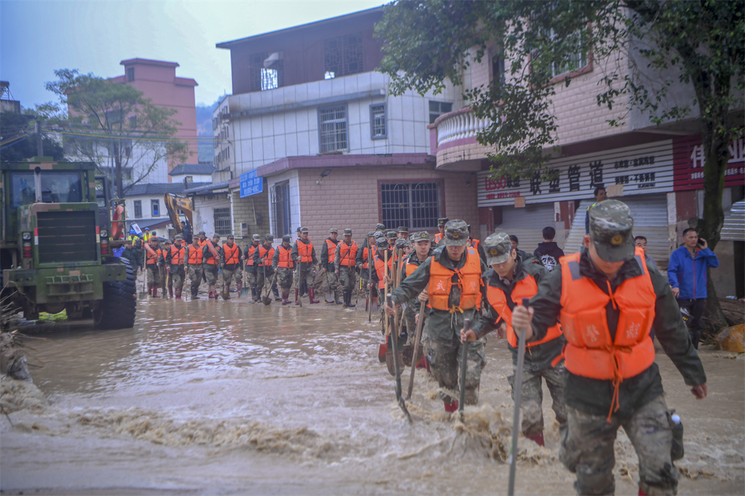 “前面塌方,大家把鞋帶系緊一點(diǎn),不然陷到泥里拔不出來(lái)?!苯涤耆栽诶^續(xù),洪水還未退去。進(jìn)山不到200米,偵察股股長(zhǎng)王闖就扯著嗓子喊道,塌方的泥土被雨水沖刷得像一團(tuán)團(tuán)“糨糊”,一腳踩下去就能沒過大腿根部。