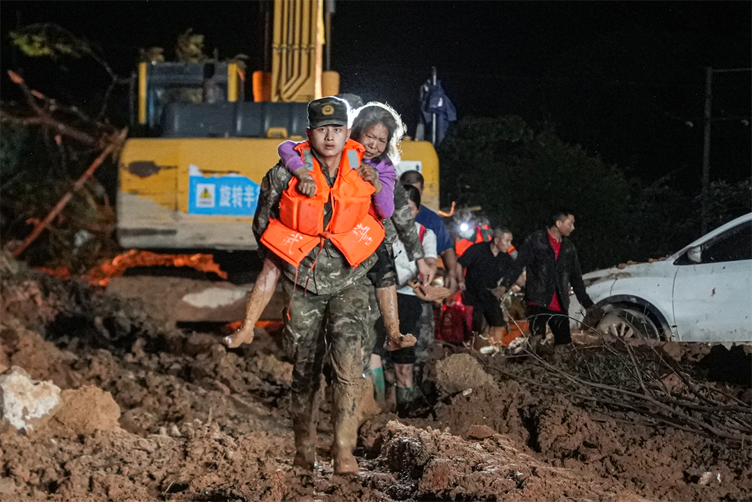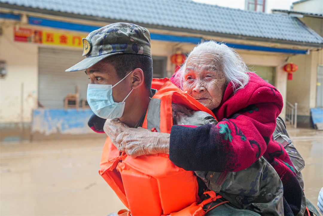 “凌晨6點(diǎn)天還沒亮,所有官兵就帶上干糧出發(fā)到各個(gè)村去疏散群眾?!睏钪艺f,江灣鎮(zhèn)下屬6個(gè)行政村有大大小小43個(gè)自然村,除情況最嚴(yán)重的梁屋村派出60人外,鍋溪村、圍坪村、江灣中心小學(xué)各派出30名兵力,胡屋村派出40名兵力,劃分若干個(gè)小組,聯(lián)合地方救援人員,按照先遣勘察、重裝開道、輕裝跟進(jìn)、觀察警戒的方式,逐村逐戶搜索勸離,剩余人員就在江灣中學(xué)和江灣鎮(zhèn)政府協(xié)助轉(zhuǎn)運(yùn)群眾。