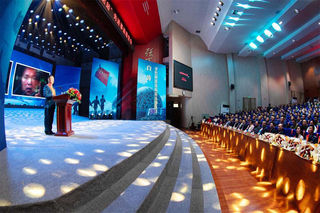 圖為先進(jìn)代表白濤在“甘巴拉英雄雷達(dá)站”先進(jìn)事跡報(bào)告會(huì)上作報(bào)告。溫志軍 攝