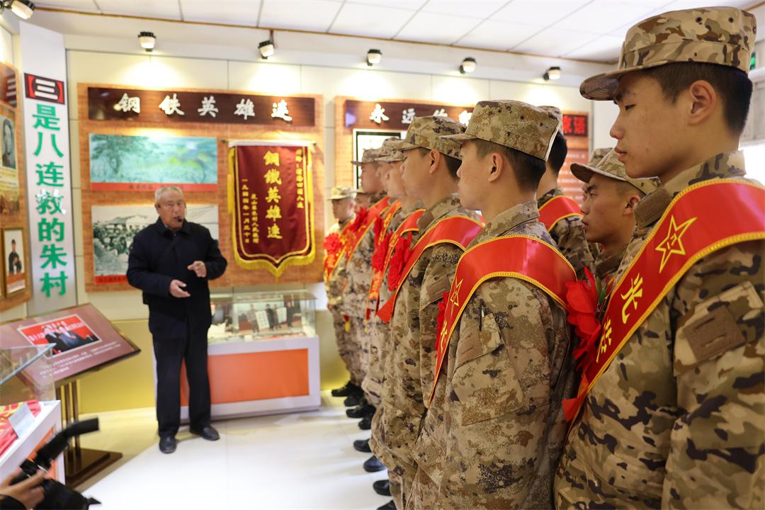 圖為臨沭縣組織預(yù)定新兵到朱村戰(zhàn)斗紀(jì)念館接受革命傳統(tǒng)教育。