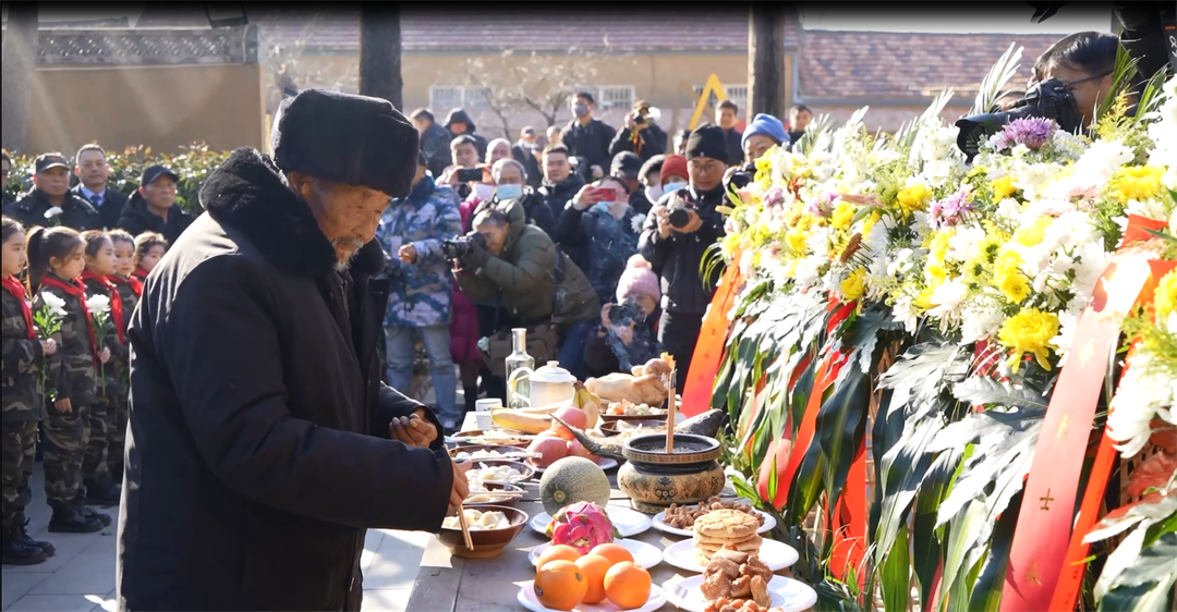 圖為臨沭縣曹莊鎮(zhèn)朱村每年大年初一,第一碗餃子敬獻(xiàn)給為保衛(wèi)朱村英勇?tīng)奚牧沂俊?/span>