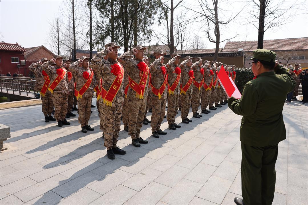 圖為臨沭縣組織預(yù)定新兵進(jìn)行入伍前宣誓活動(dòng)。