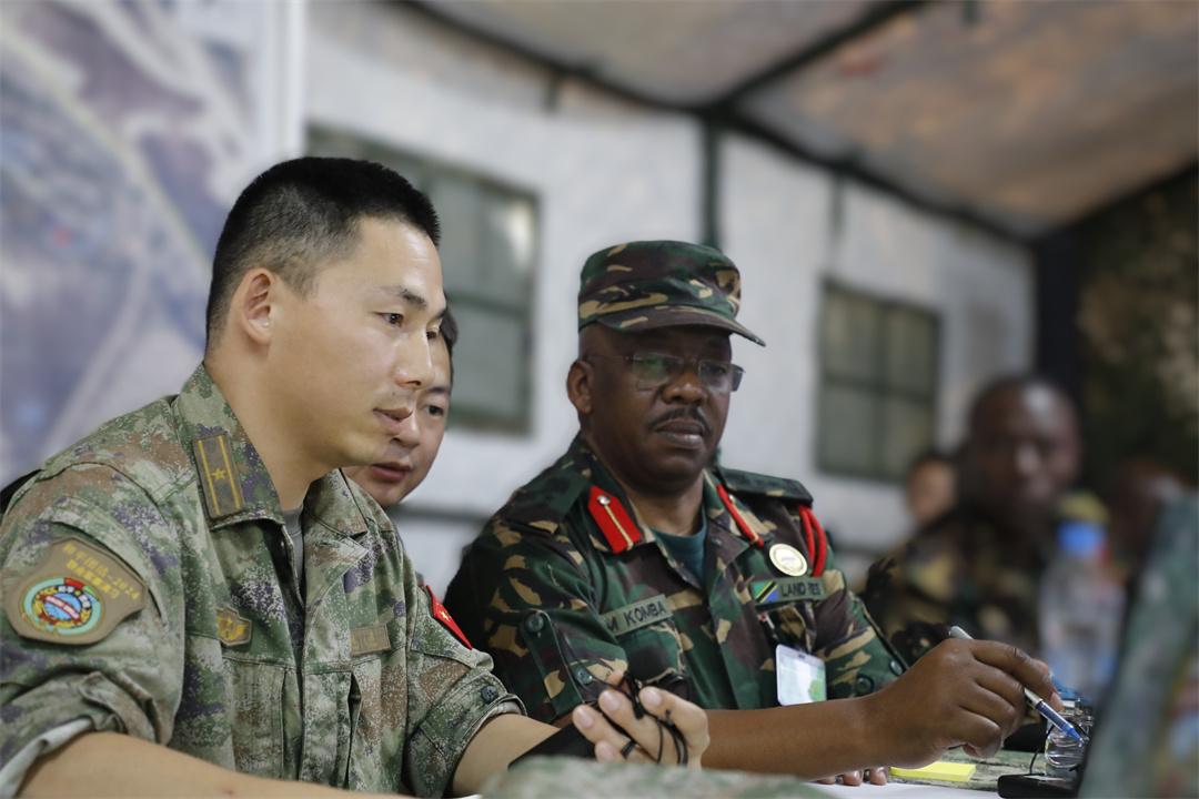 圖為中坦雙方聯(lián)合導(dǎo)演部正在細(xì)化導(dǎo)調(diào)計(jì)劃。