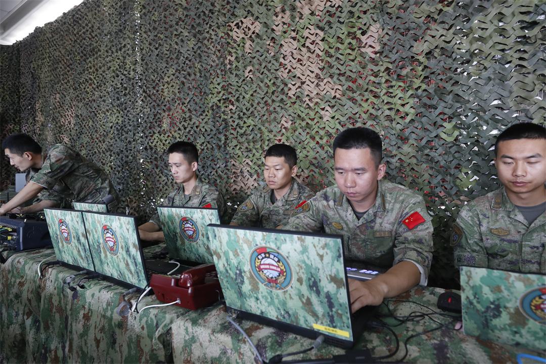 圖為聯(lián)合導(dǎo)演部中方人員精心保障通聯(lián)。