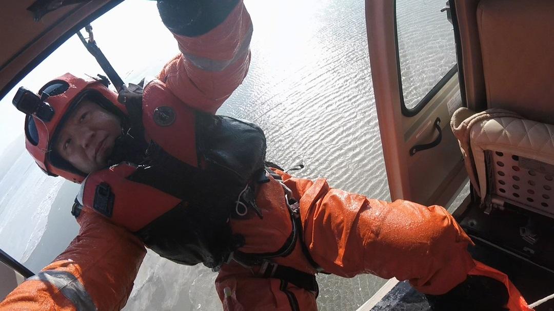 下放過程中,張闖努力擺動雙腿克服身體搖動,絞車手通過目視他的位置引導(dǎo)機長微調(diào)飛機位置。最終,在機組配合下,張闖準確落到落水者身邊,成功完成救援。