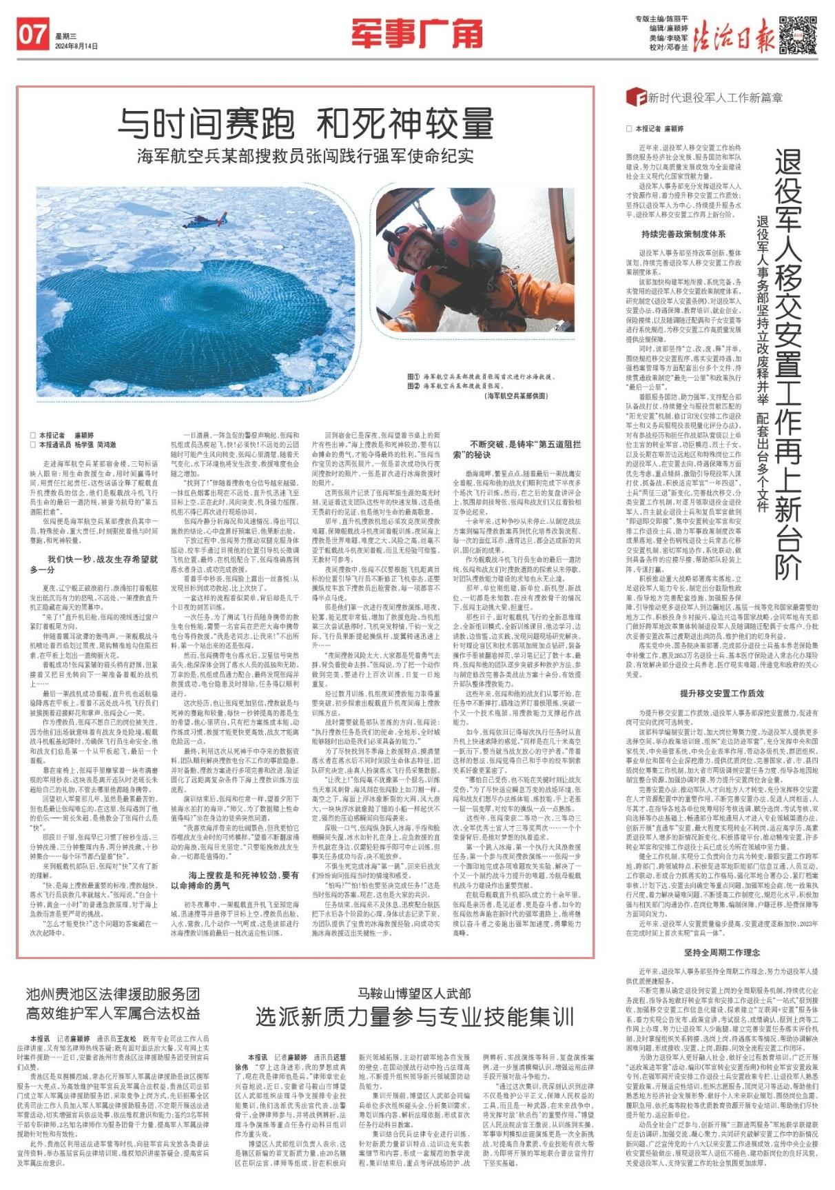 第一個跳入冰海,第一個執(zhí)行大風(fēng)浪救援任務(wù),第一個參與夜間搜救演練……張闖一步一個腳印地完成各項難題攻關(guān)實驗,解決了一個又一個制約戰(zhàn)斗力提升的難題,為航母艦載機戰(zhàn)斗力建設(shè)作出重要貢獻。