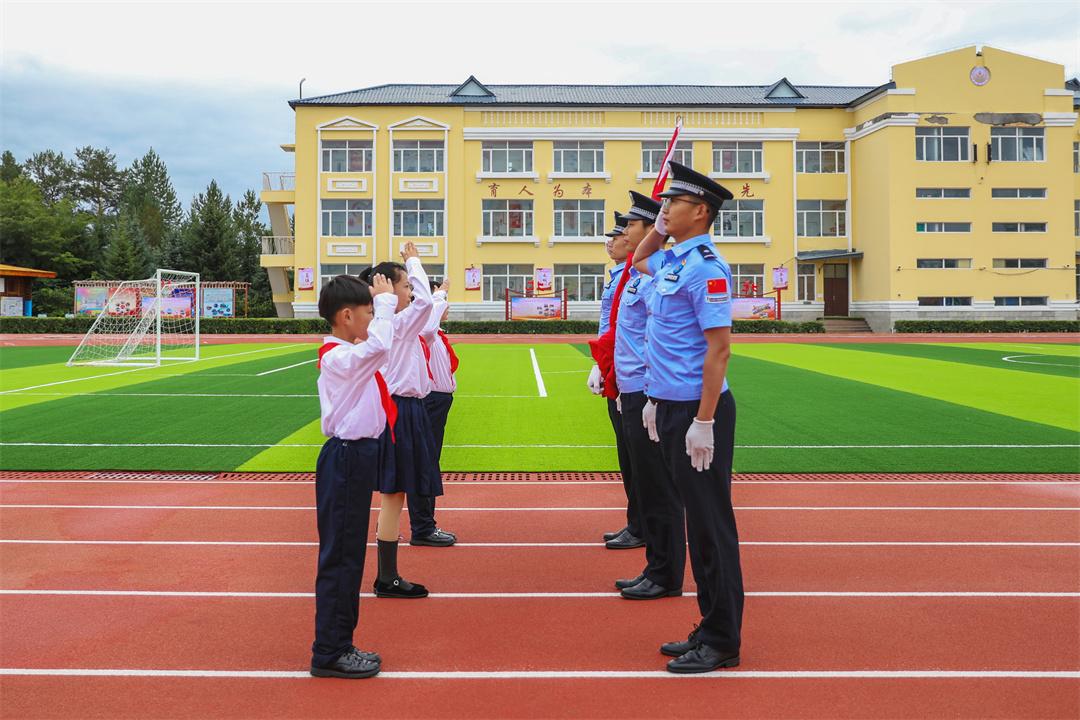 在國(guó)旗下,漠河市邊境檢查站干警陳澤講述了他在零下53℃極寒天氣下開展保境安民的感人故事,漠河市洛古河村駐村第一書記王成龍分享了他在黑龍江省源頭村落帶領(lǐng)百姓衛(wèi)國(guó)戍邊的駐村工作經(jīng)歷,為在場(chǎng)的每位少先隊(duì)員上了一堂生動(dòng)的國(guó)防教育課,漠河市少先隊(duì)員代表王涵用稚嫩而堅(jiān)定的聲音代表廣大少先隊(duì)員表達(dá)了對(duì)祖國(guó)的熱愛(ài)和對(duì)戍邊工作者的崇敬之情。團(tuán)省委副書記陳海萍在講話中鼓勵(lì)少先隊(duì)員要學(xué)習(xí)漠河戍邊工作者堅(jiān)韌不拔和無(wú)私奉獻(xiàn)的精神,要立足祖國(guó)最北方志存高遠(yuǎn)、勤奮學(xué)習(xí)、錘煉品德、強(qiáng)健體魄,敢于創(chuàng)新、富于創(chuàng)意、樂(lè)于創(chuàng)造,要沿著“入隊(duì)、入團(tuán)、入黨”的“人生三部曲”奮力前進(jìn),為推進(jìn)中國(guó)式現(xiàn)代化、實(shí)現(xiàn)強(qiáng)國(guó)復(fù)興偉業(yè)貢獻(xiàn)青春力量。