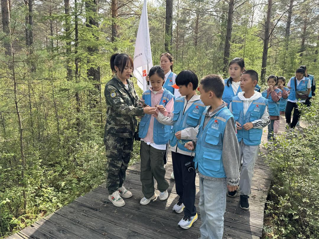 隨后,少先隊(duì)員與軍警代表共同重走習(xí)近平總書記在漠河鎮(zhèn)考察的路線——母樹林。講解員講述了大興安嶺開發(fā)建設(shè)60周年的歷程和感人的戍邊故事。