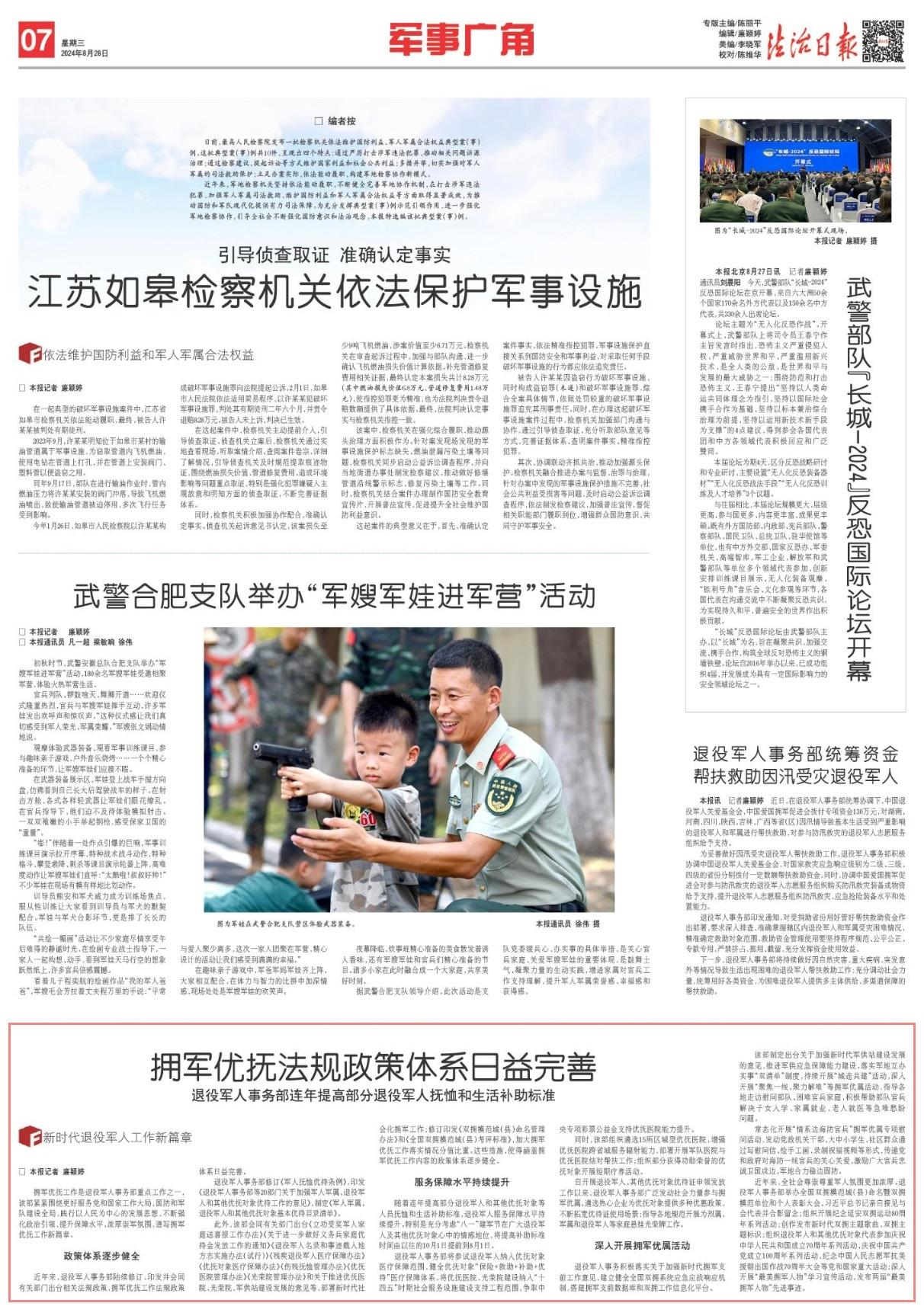 近年來,退役軍人事務(wù)部陸續(xù)修訂、印發(fā)并會(huì)同有關(guān)部門出臺相關(guān)法規(guī)政策,擁軍優(yōu)撫工作法規(guī)政策體系日益完善。