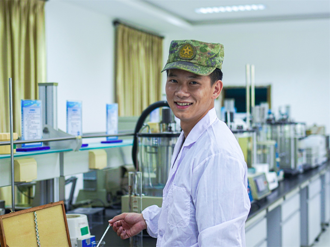 圖為下士蘇正杰最后一次進(jìn)行油料檢測(cè)。