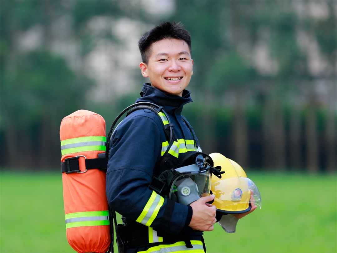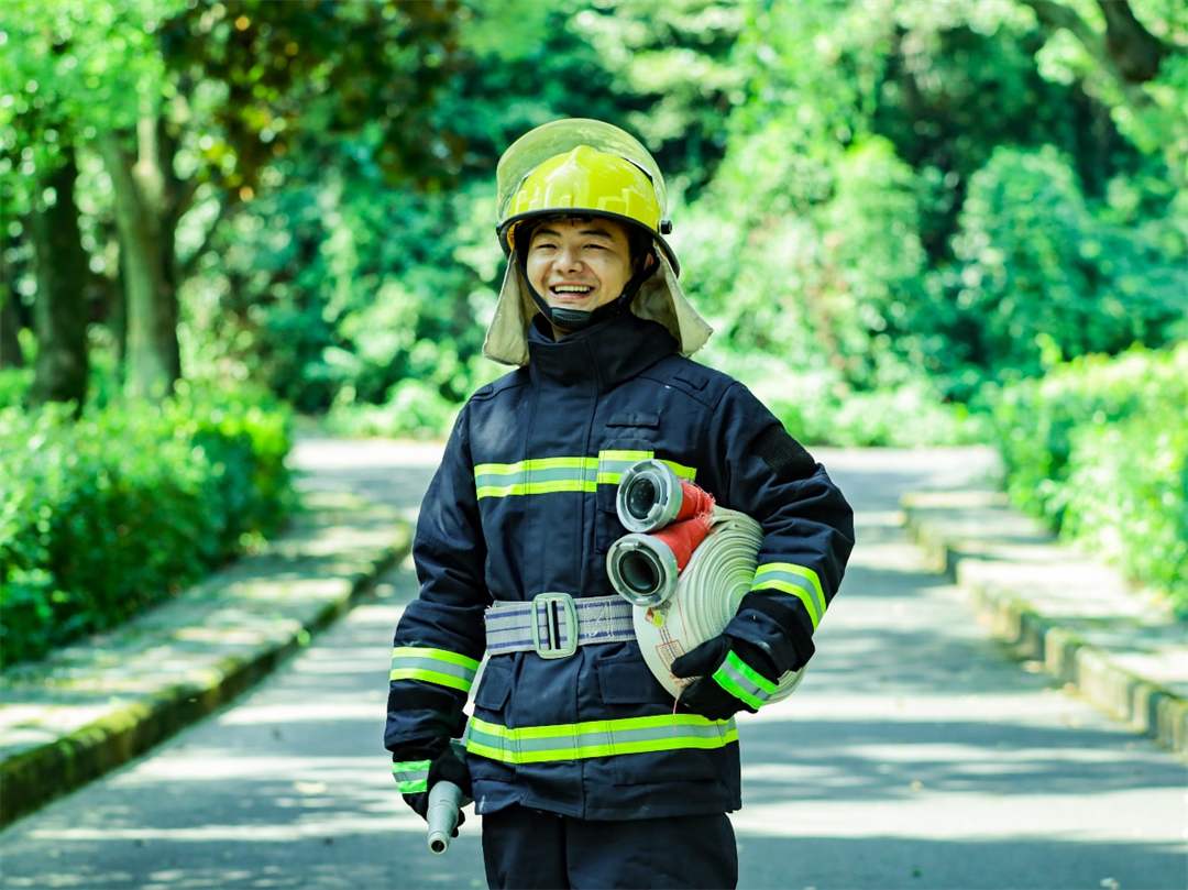 圖為下士孔維剛最后一次參加消防分隊(duì)演練。