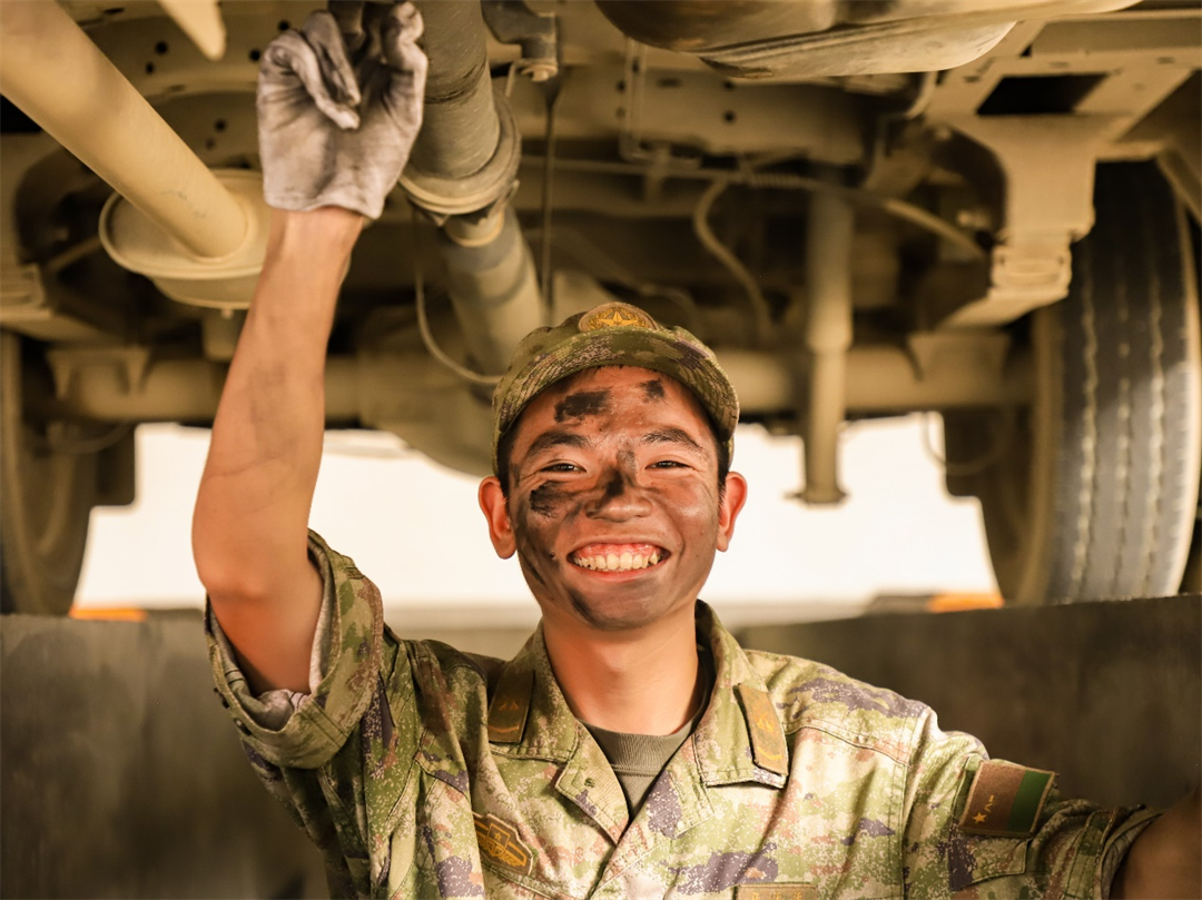 圖為中士張活活最后一次進(jìn)行車輛維修。