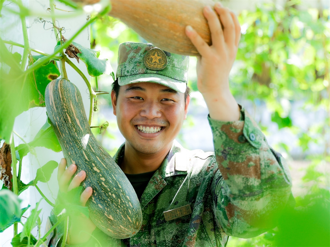 圖為中士徐浩文最后一次享受軍營豐收的喜悅。