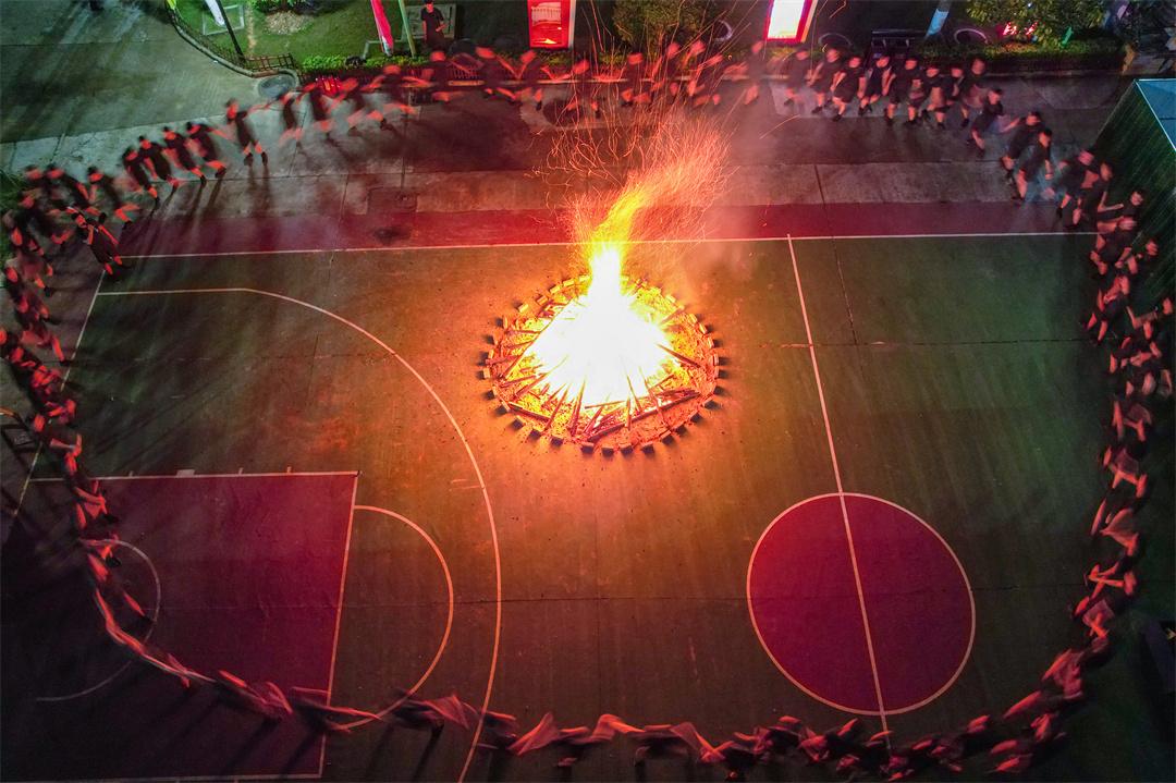 圖為武警官兵篝火晚會現(xiàn)場。