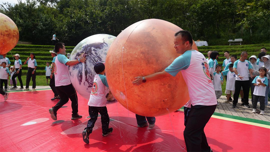 “加油!加油!加油!”在文昌銅鼓嶺測控點,趣味套圈游戲?qū)⒂H子活動引向高潮。瞄準(zhǔn)、蓄力、拋出……在與爸爸媽媽的協(xié)作和挑戰(zhàn)中,一個個航天娃沉浸在歡樂的海洋里。隨著拋出的圓圈套中心儀獎品,小朋友們喜笑顏開,帶著戰(zhàn)利品凱旋。