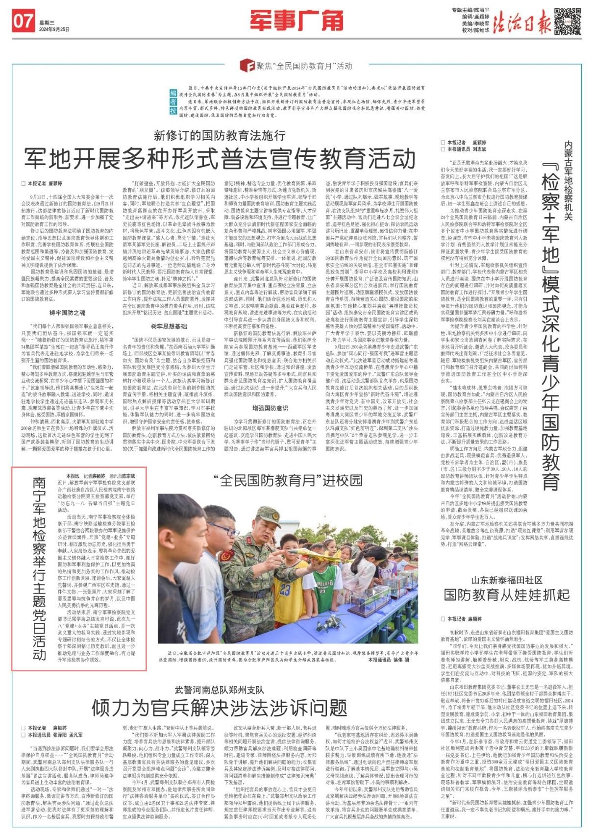 近日,解放軍南寧軍事檢察院黨支部聯(lián)合廣西壯族自治區(qū)人民檢察院南寧鐵路運輸檢察分院第五檢察部黨支部,舉行“勿忘九一八 吾輩當(dāng)自強”主題黨日活動。
