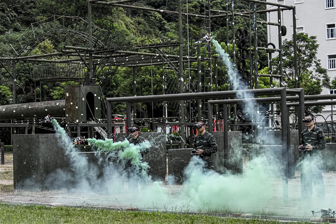 圖為官兵進(jìn)行無人機(jī)課目演示。