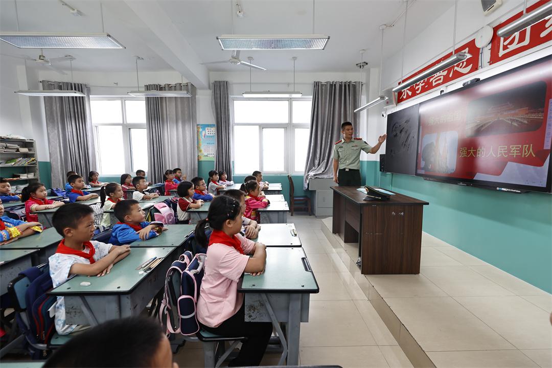 圖為武警北川中隊(duì)赴駐地小學(xué)開(kāi)展“愛(ài)國(guó)主義教育進(jìn)校園”主題活動(dòng)。