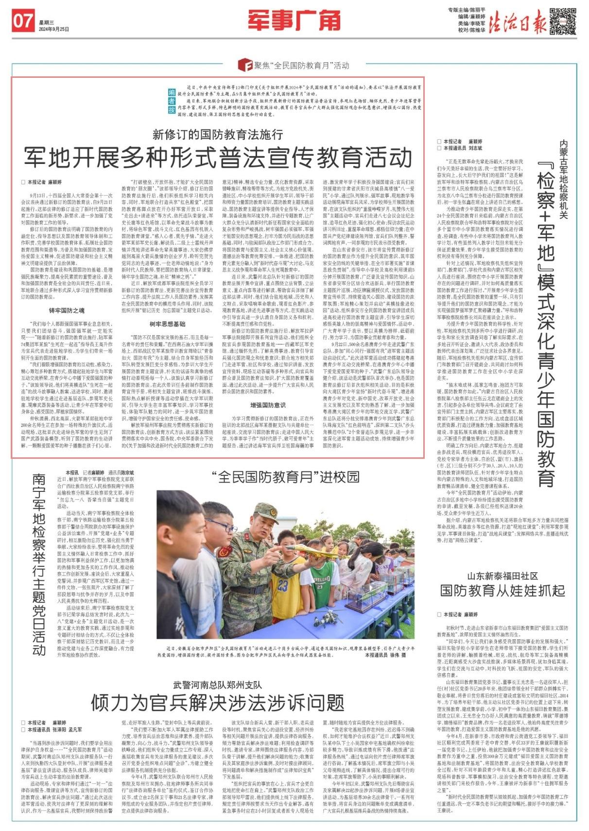 法治日報全媒體記者 廉穎婷 通訊員 蔣浩 黃琛 岳小林 朱會 高福景 耿鵬宇 羅彬 茆琳 鄧棟之 楊覲源 宋克鑫 呂強 廖彬華 郭曉寧
