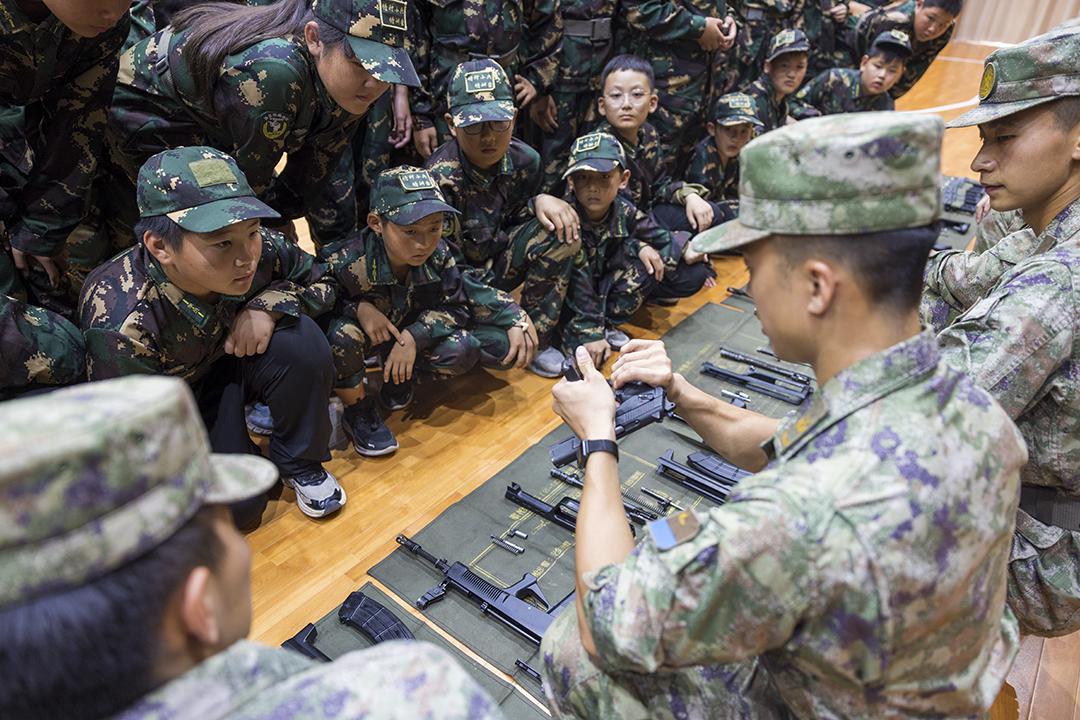 圖為武警廣東總隊開展“同心同行·強國有我”港澳青少年進(jìn)軍營活動,港澳青少年參觀武器裝備。劉佳良 金家威 攝