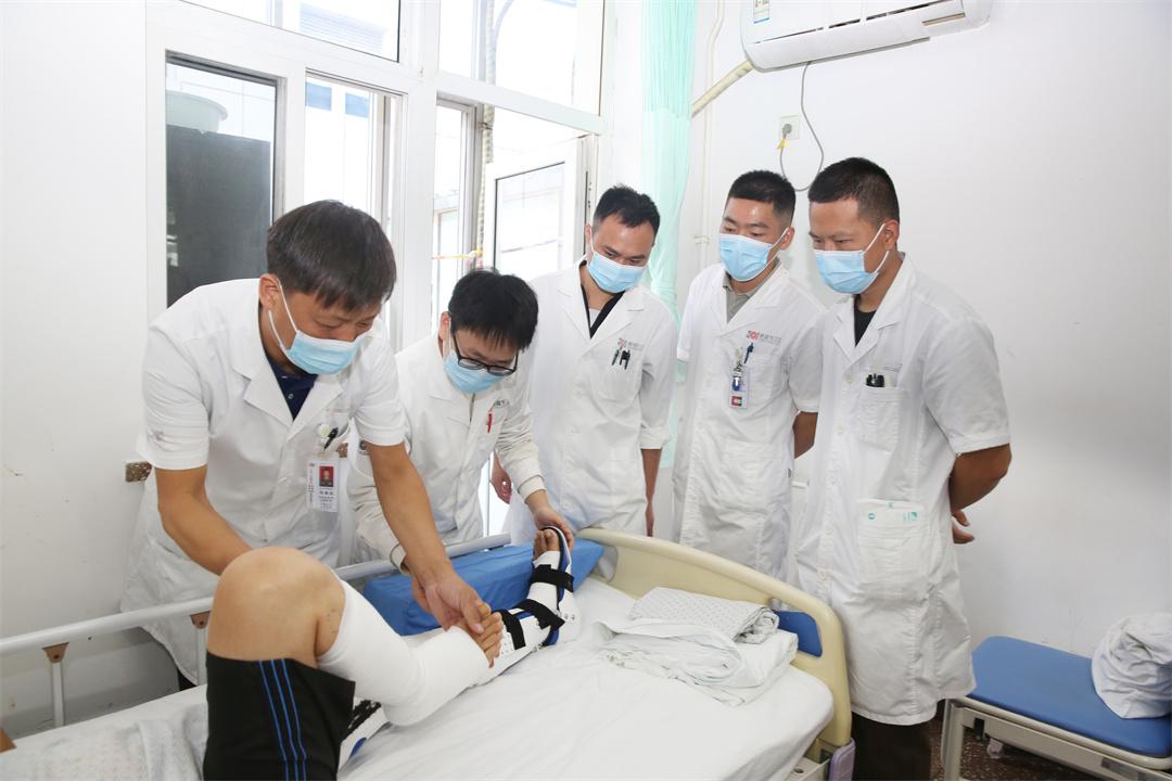圖為骨科醫(yī)學(xué)部顯微外科張建政主任為按照指南規(guī)范的標(biāo)準(zhǔn)進行自體骨移植術(shù)后的患者檢查,結(jié)果顯示恢復(fù)良好。