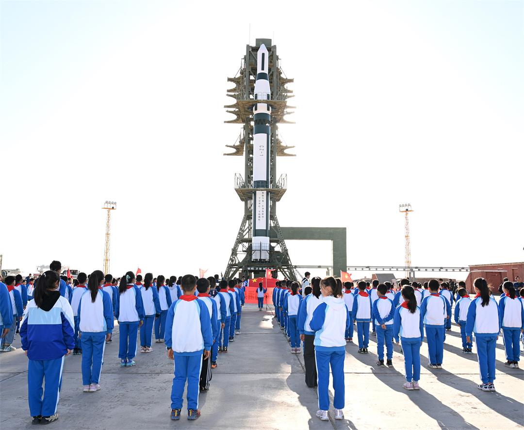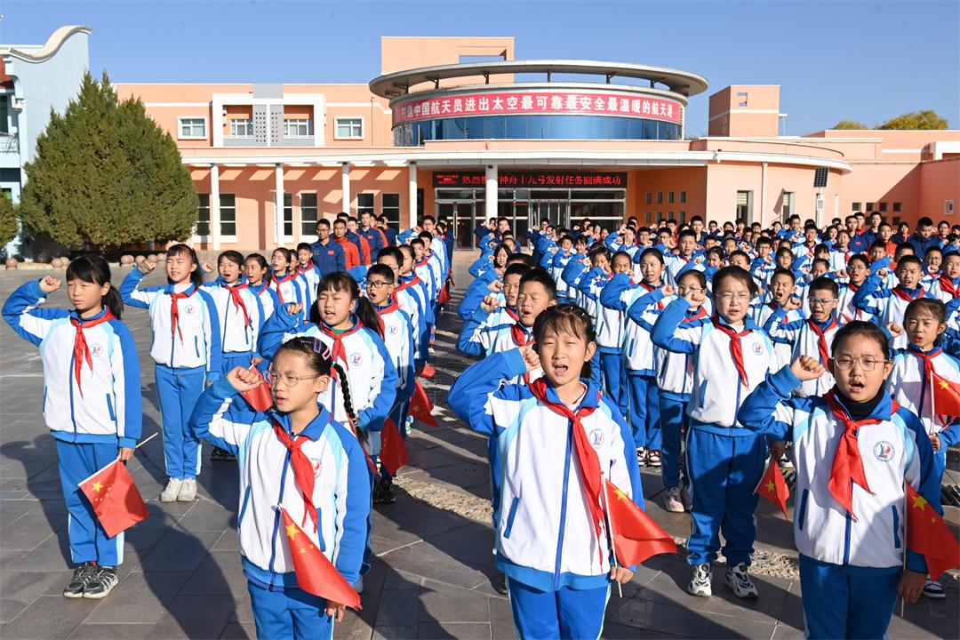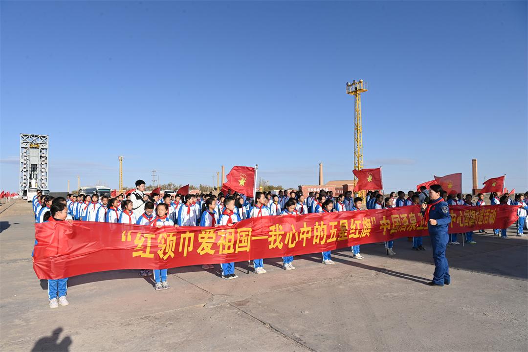 隨后,少先隊(duì)員們帶著國旗前往載人航天發(fā)射場。神舟十九號(hào)載人飛船發(fā)射任務(wù)0號(hào)指揮員趙磊為少先隊(duì)員們介紹了這座我國目前唯一的載人航天發(fā)射塔架。就在前幾天,神舟十九號(hào)航天員乘組從這里飛向中國空間站。截至目前,這里發(fā)射了19艘神舟飛船,將24名38人次航天員送入太空。這面滿載榮譽(yù)的國旗正是從這個(gè)塔架上隨航天員一同進(jìn)入中國空間站。