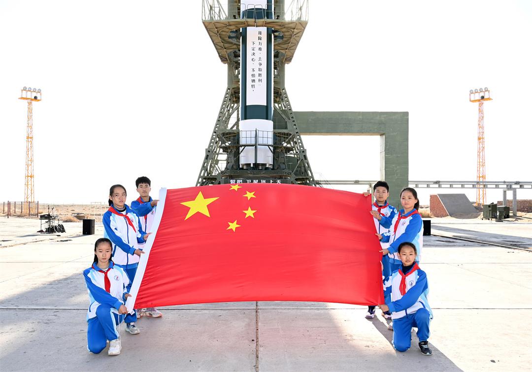 11月1日下午,這面隨著神舟十八號(hào)載人飛船進(jìn)入中國空間站,又隨神舟十七號(hào)載人飛船返回地面的國旗,在東方紅衛(wèi)星發(fā)射場徐徐展開。