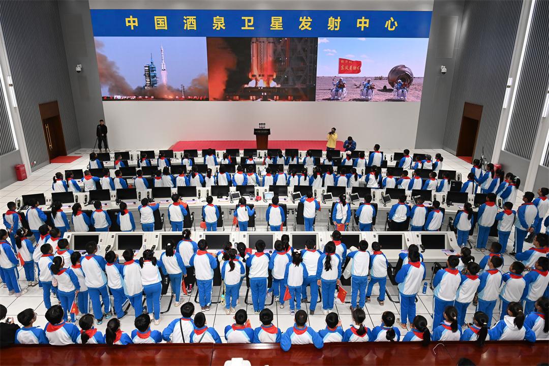 升旗儀式結(jié)束后,全體少先隊(duì)員來到東風(fēng)指揮控制大廳,這里是航天發(fā)射的任務(wù)指揮中心,神舟十九號(hào)發(fā)射任務(wù)圓滿成功的大紅屏透著喜慶的氛圍,這塊屏幕背后凝結(jié)著許許多多航天科技工作者的智慧和汗水,是他們共同托舉神箭飛天。