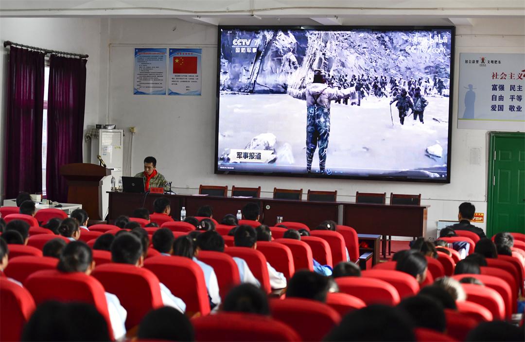 圖為在肥東縣長臨河學校中心小學,孩子們聆聽英雄故事。