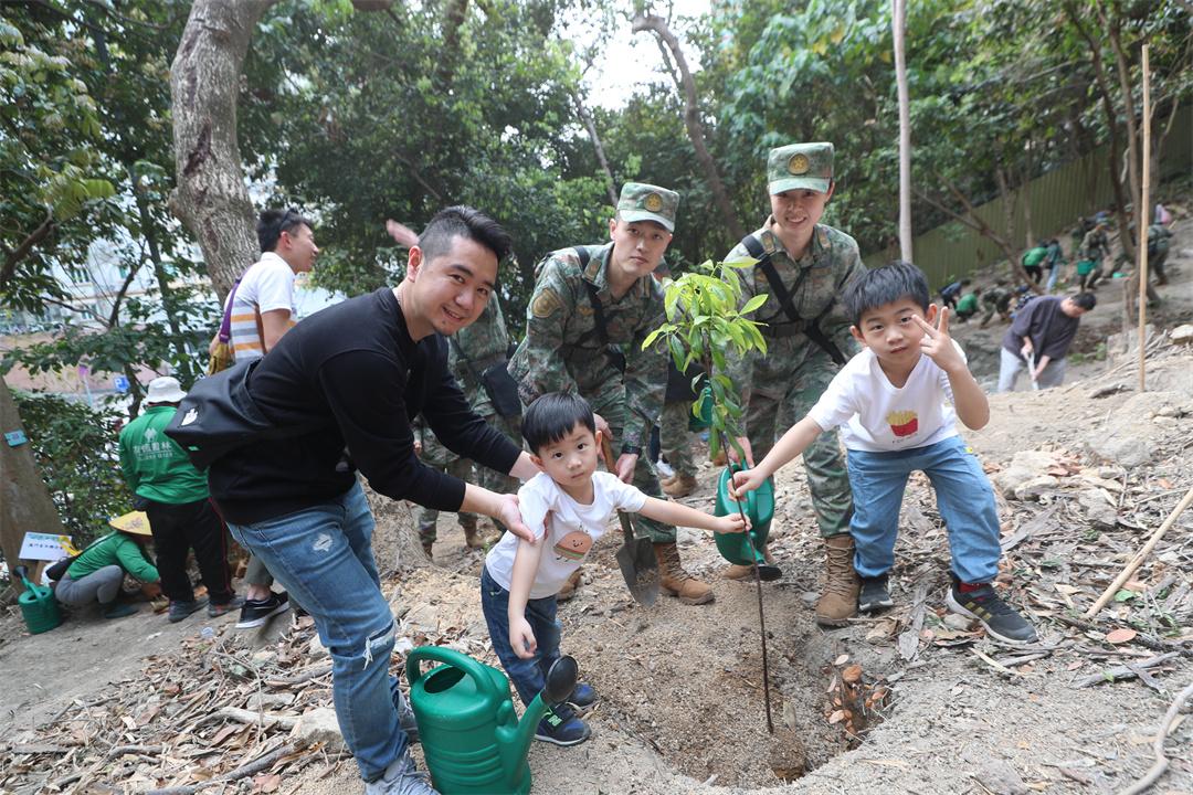 圖為駐澳門部隊組織義務植樹活動。
