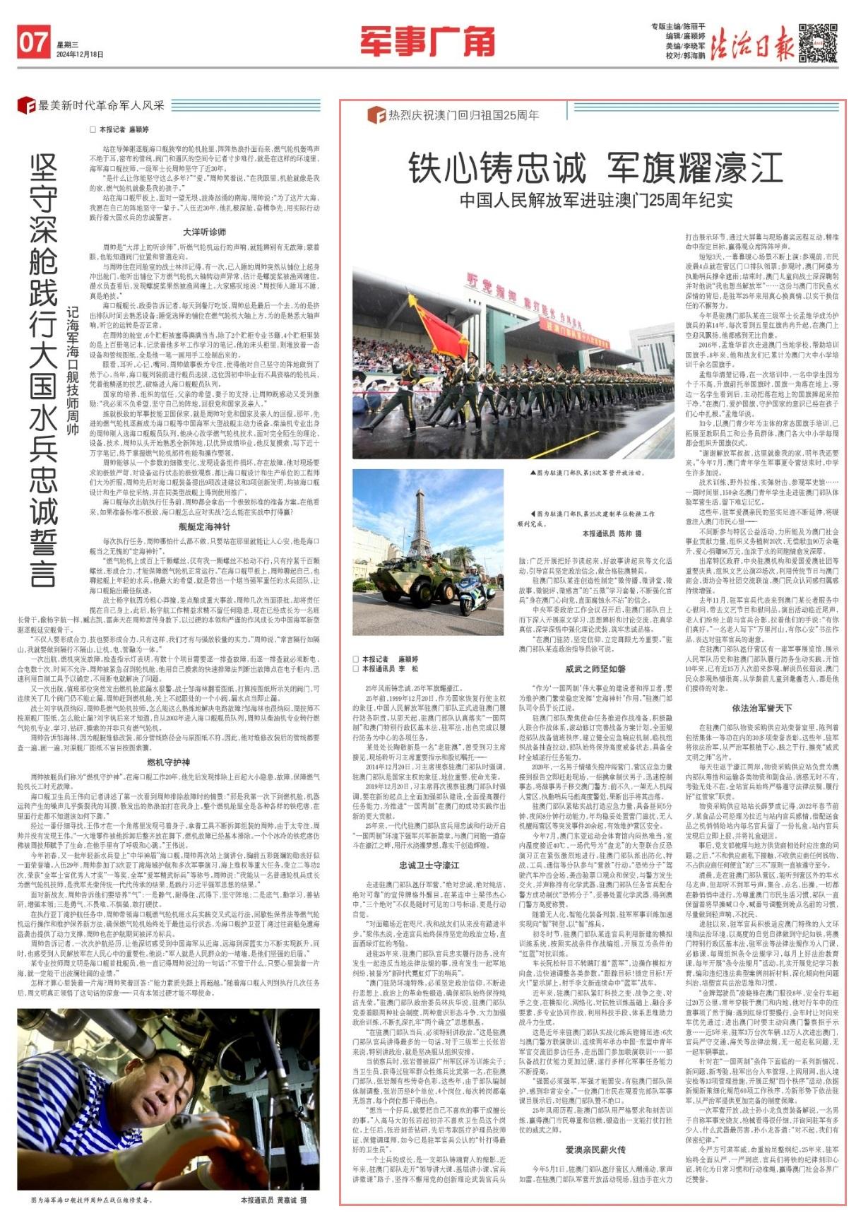 25年風雨鑄忠誠,25年軍旗耀濠江。